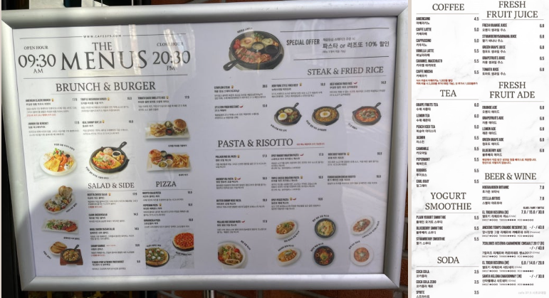 두번째 메뉴판은 네이버 검색해서 봤을 때 깔끔해서 갖고왔는데 첫번째는 인터넷상으로는 잘 안보이더라구요